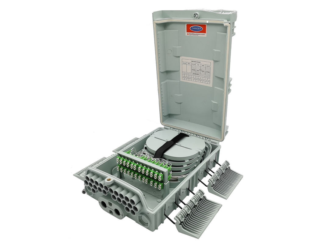 24 boîtes de distribution optiques extérieures gauches de fibre de bâti de Polonais avec 2x32 l'adaptateur duplex du diviseur IP65 LC/APC