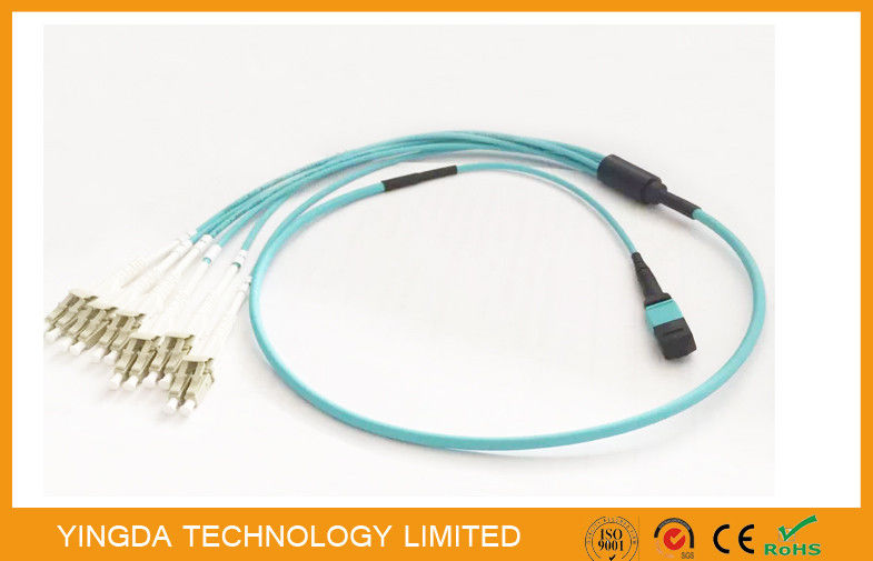 100G OM3-300 QSFP MPO MTP câble avec 6 x LC Duplex Uniboot connecteur Aqua